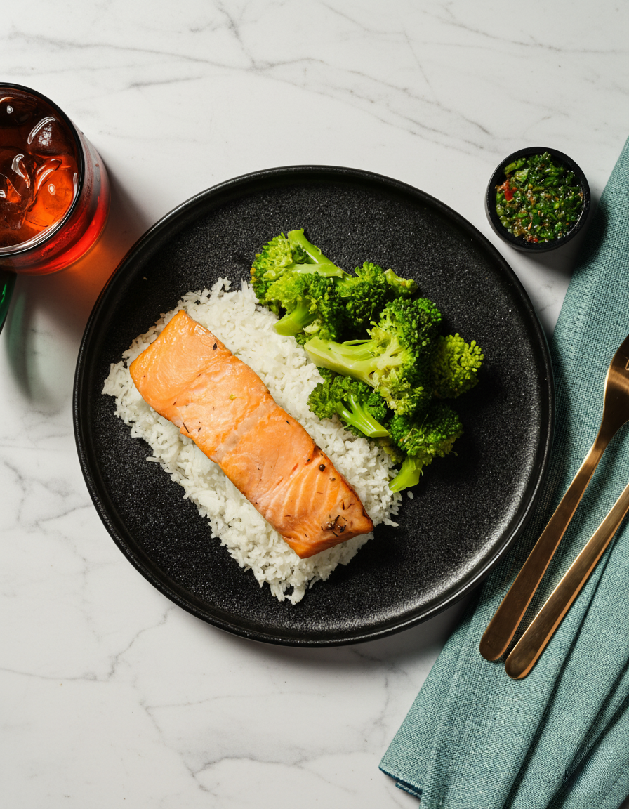 Chimichurri-lohi riisin kera sisältää aromaattista lohifileetä, joka on kypsennetty ja tasapainotettu kevyillä yrteillä. Jokainen suupala tarjoaa harmonista makua ja ravitsevuutta, runsaasti ravintoaineita ja terveellisiä rasvoja. Terveellinen valinta, joka tuo ravintolatasoisen maun suoraan pöytääsi.