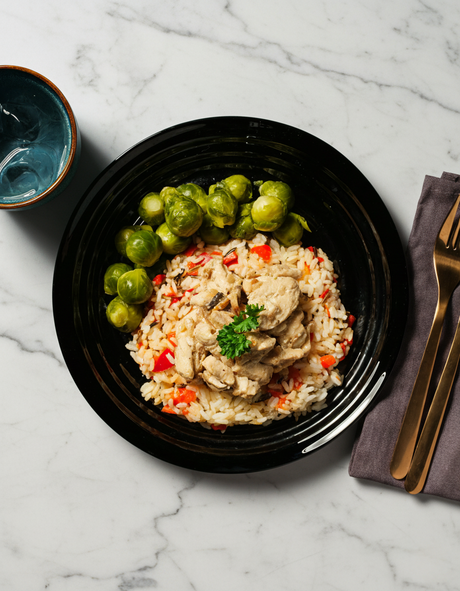 Kermainen sieni-kanapata villiriisillä -annos sisältää raikasta, täydellisesti kypsennettyä kanaa, jota tarjoillaan yrttivihreiden ja pehmeän kermakastikkeen kera. Jokainen suupala tarjoaa harmonisen yhdistelmän makua ja ravitsevuutta, suunniteltuna tukemaan tasaista energiaa ja palautumista. Täydellinen valinta, joka tuo ravintolatasoisen maun suoraan pöytääsi.