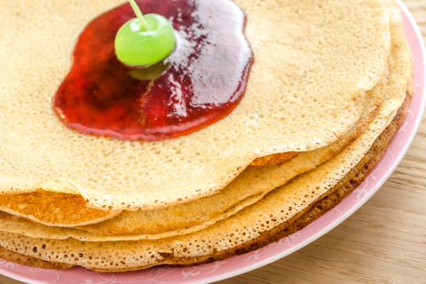 Kananmuna, maito, vaahterasiirappi, suola, vehnäjauho, oliiviöljy, maitorahka, kirsikka, sokeri