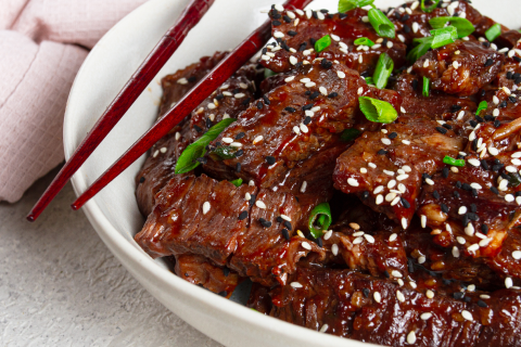 Naudan suikaleet, soijakastike, maissitärkkelys, ruokasooda, balsamietikka, oliiviöljy, hunaja, peruna, suola, perunamauste, valkosipulijauhe, sipulijauhe, mustapippuri, valkokaali, pekoni, voi, gochujang-tahna, vegaaninen kerma (soija), vesi
